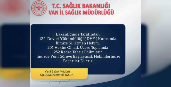 SERHED HABER - Van İl Sağlık Müdürlüğü tarafından yapılan açıklamada, yeni atanan hekimlerin kentin farklı bölgelerinde göreve başlayacağı belirtildi.