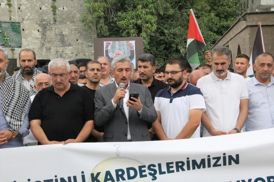 Açıklamanın ardından katılımcılar tekbirler getirerek "Kahrolsun İsrail" sloganları attı.