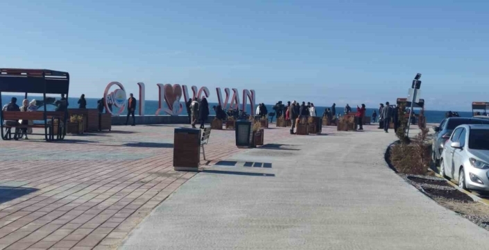 Hava sıcaklığının mevsim normallerinin üzerine çıkmasıyla birlikte özellikle Edremit, İskele ve Fidanlık sahillerinde yoğunluk yaşanırken, vatandaşlar parklarda yürüyüş yapıp göl manzarasının tadını çıkardı.