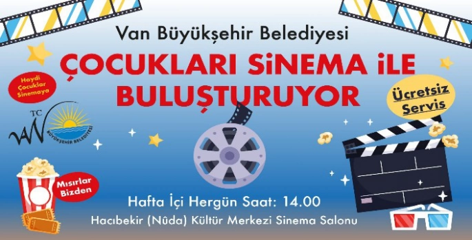 Sosyal Belediyecilik alanında yaptığı çalışmalara bir yenisini daha ekleyen Van Büyükşehir Belediyesi, yaz tatilinde çocukları sinemayla buluşturuyor. Kültür ve Sosyal İşler Daire Başkanlığı organizasyonunda gerçekleşecek sinema günlerinde, her gün saat 14.00’te bir mahalleden çocuklar ücretsiz servislerle alınıp, Nûda (Hacıbekir) Kültür Merkezi’ne götürülecek. Burada çeşitli ikramlarda da bulunulacak olan çocuklar, filmin ardından yeniden servislerle evlerine bırakılacak.