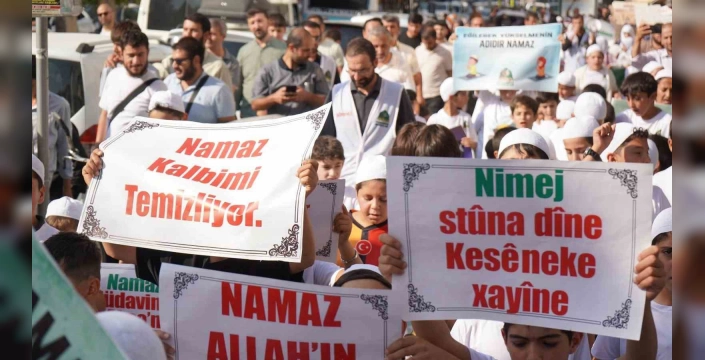 SERHED HABER - Beşyol Meydanında başlayan yürüyüş, Cumhuriyet Caddesi güzergâhından devam ederek Kent Meydanında sona erdi. Burada saf tutan çocuklar, ikindi namazını hep birlikte kıldı. Kuran-ı Kerim tilavetinin ardından konuşan İlahiyatçı Muhammet Emin Demir, namazın önemine dikkat çekti. Demir, "Namaz kılan kişi cennetin anahtarını elde eder. Peygamber Efendimiz, namazı evin ortasındaki kolona benzetiyor. Namazını hakkıyla kılan, dinini sağlam tutmuş olur. Namaz kılmayan kimse ise yıkık bir amelle Allahın huzuruna gider" dedi.