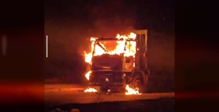 Van’ın Tuşba ilçesine seyir halindeki belediyeye ait çöp kamyonu seyir halindeyken alev alev yandı.