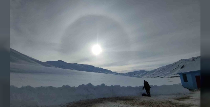 Van’da gökyüzünde oluşan ve güneşin etrafını saran hale, görenleri hayran bıraktı. Öğlen saatlerinden itibaren etkisini gösteren doğa olayı, kent merkezinde ve çevre ilçelerde net bir şekilde gözlemlendi.