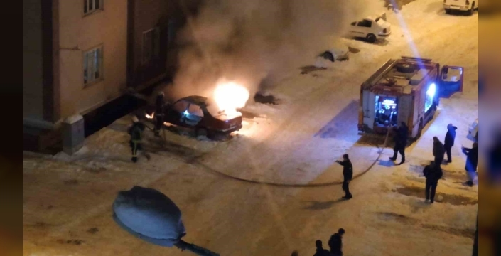 Van’ın İpekyolu ilçesinde park halinde olan otomobil alev alev yandı.