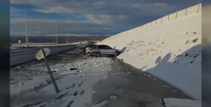 Sürücülerinin isimleri ve plakaları öğrenilemeyen 3 araç, buzlanmadan dolayı çarpıştı.