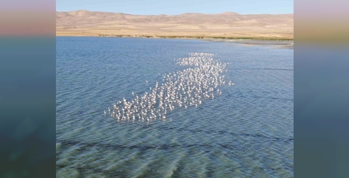 Türkiye’nin en önemli sulak alanlarından biri olan Van Gölü havzası, her yıl olduğu gibi bu yıl da göç yolculuğundaki binlerce flamingoya ev sahipliği yapıyor. İran’ın Urumiye Gölü başta olmak üzere farklı bölgelerden gelerek havzadaki sulak alanları mesken tutan allı turnalar (flamingolar), göl ve çevresinde adeta görsel bir şölen sunuyor. Zarif boyları, pembe-beyaz tüyleri ve zarafetleriyle doğanın en güzel kuşlarından biri olan allı turnalar, bu günlerde Van Gölü havzasında görsel bir şölen sunuyor. Erçek Gölü başta olmak üzere Van Gölü çevresindeki sulak alanlarda yoğun olarak görülen flamingolar, gün doğumu ve batımı saatlerinde su üzerindeki danslarıyla izleyenleri büyülüyor.