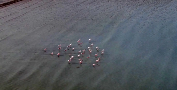 Türkiye'deki yaklaşık 450 kuş türünden 250'sine ev sahipliği yapan Van Gölü Havzası'nda konaklayan flamingolar, görüntüleriyle göz kamaştırıyor.