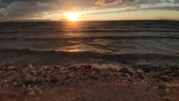 SERHED HABER - Van’da akşam saatlerinde etkili olan rüzgar, Van Gölü’nde dalgaların yükselmesine neden oldu. Kıyıya vuran dalgalar, görsel bir şölen oluştururken vatandaşlar bu anları cep telefonlarıyla görüntüledi. Özellikle İskele ve Edremit sahilinde dalgaların boyu zaman zaman bir metreyi buldu. Sahilde yürüyüş yapanlar, rüzgarın etkisiyle gölün adeta denizi andırdığını ifade etti. Kimi vatandaşlar fırtınadan korunmak için sahilden uzaklaşırken, kimileri de dalgaların oluşturduğu manzarayı hayranlıkla izledi.