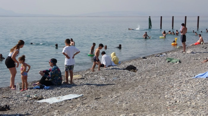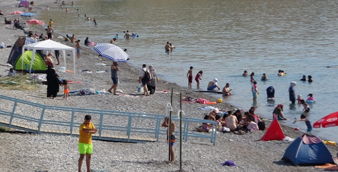 SERHED HABER - Denize kıyısı olmadığı halde Türkiye’nin tek mavi bayraklı plajı olma unvanına sahip olan Van Gölü’ndeki Mollakasım Plajı, berraklığıyla ünlü sahilleri aratmıyor. Dünyanın en büyük sodalı gölü, Türkiye’nin ise en büyük gölü olan Van Gölü’nün kıyıları yaz aylarında yerli ve yabancı turistlerle dolup taşıyor. Denize kıyısı olmadığı halde Türkiye'de mavi bayrak verilen ilk plaj olan Mollakasım Plajı’nda yazın son ayında yoğunluk yaşanıyor. Hava sıcaklığının 30-35 dereceyi bulduğu Van’daki yerli ve yabancı turistler, göle girerek serinledi.