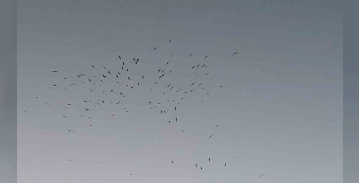SERHED HABER- Göl üzerinde toplanan kuş sürüsü, dairesel hareketlerle uzun süre havada süzülerek adeta görsel bir şölen sundu.