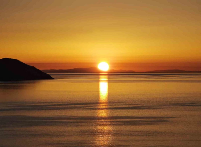 Bitlisin Tatvan ilçesinde Van Gölü üzerinde doğan güneşin oluşturduğu görüntü hayranlık uyandırdı.