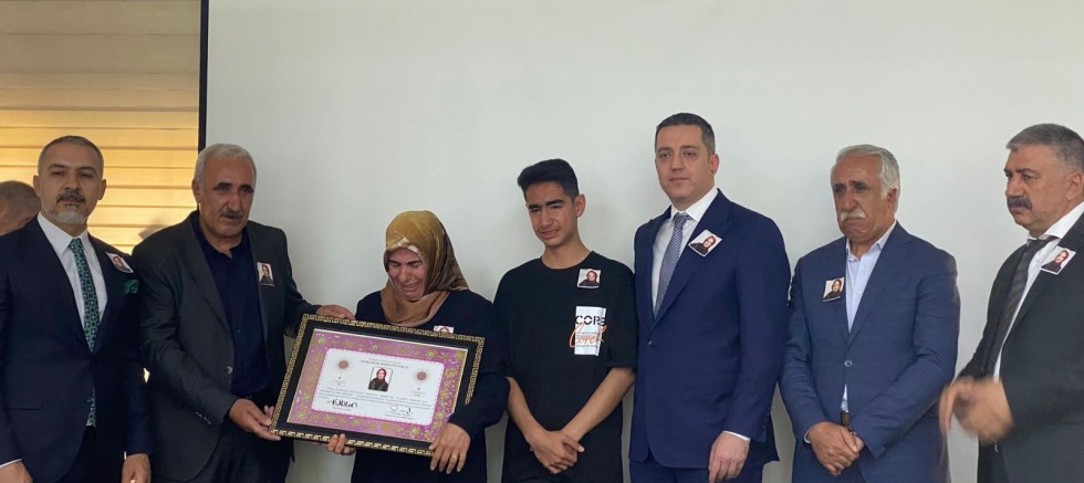 Muş Barosu Başkanı Av. Kadir Karaçelik ve TBB Üyesi Av. Abdülbaki Çelebi ile birlikte genç yaşta hayatını kaybeden Av. Esma Onurel’in ailesiyle bir araya gelen Sağkan, törende yaptığı konuşmada geçen yıl elim bir kaza sonucu hayatını kaybeden Av. Esma’nın vefatından duyduğu üzüntüyü dile getirerek, merhumeye Alah’tan rahmet, aileye, yakınlarına ve Baro üyelerine taziye dileğinde bulundu.
