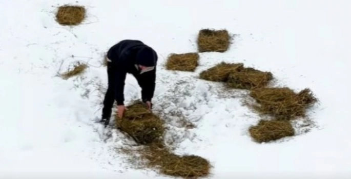 Yoğun kar yağışının ardından doğanın tamamen kar örtüsü ile kaplanmasıyla birlikte yaban hayatının yem bulmakta zorlanacağını değerlendiren Doğa Koruma ve Milli Parklar 13. Bölge Müdürlüğü ekipleri yaban hayvanları için karla kaplı dağların belirli bölümlerinde yemleme çalışması başlattı.