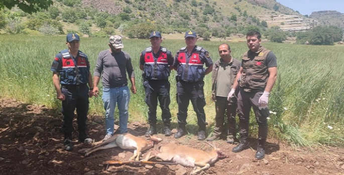 Malatya’da, İl Jandarma Komutanlığı ekiplerince yapılan çalışmalarda Akçadağ ilçesi Kozluca Mahallesi’nde avlanması yasak olan 2 yaban keçisinin avlandığı tespit edildi. Avlandıktan sonra traktörle tarlaya taşınan yaban keçilerine jandarma ekipleri el koyarken olayı gerçekleştirdiği belirlenen E.Ş.’ye (34) 613 bin 980 TL para cezası uygulandı.