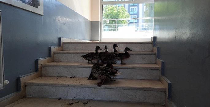Stadyumun koridorlarında dolaşan yaban ördeği ve 6 yavrusu DKMP ekiplerince bulunduğu yerden alınarak tekrar doğal yaşam ortamlarına bırakıldı.