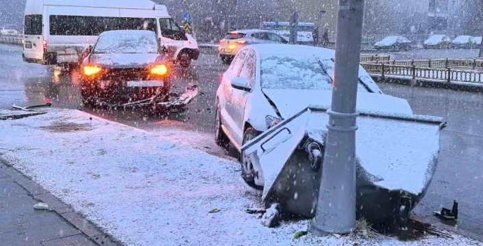 Yağışlı hava nedeniyle kayganlaşan yolun kazada etkili olduğu değerlendirilirken, olayda herhangi bir can kaybı ya da yaralanma yaşanmadı.