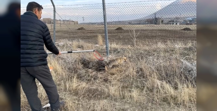 SERHED HABER- Iğdır’da duyarlı vatandaşlar tarafından tel örgülere takılmış halde yaralı olarak görülen Kızıl Tilki (Vulpes vulpes), Doğa Koruma ve Milli Parklar Şube Müdürlüğüne bildirilmesinin ardından ekipler tilkiyi bulunduğu yerden kurtardı.