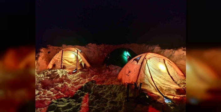 Faaliyette sporcular, -9 dereceye varan soğukta bin 850 metre rakımda kamp kurarak 2 bin 347 metre yüksekliğindeki zirveye ulaştı.