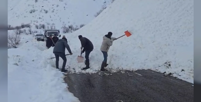 SERHED HABER- Sürücüler ve vatandaşlar küreklerle çığı kaldırarak yolu ulaşıma açtı.