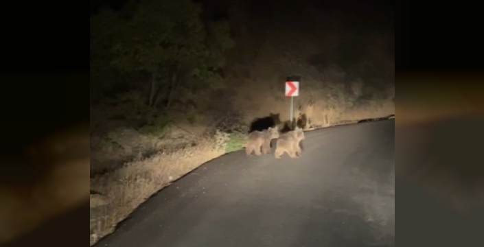 SERHED HABER - Kemaliye ilçesine bağlı Yeşilyurt köyü yolu üzerinde gece seyahat eden vatandaşların güzergahında yola inen iki yavrun ayı görüntülendi. Aracın önünde bir süre koşan ayılar daha sonra yoldan çıkarak ormanlık araziye girdi.