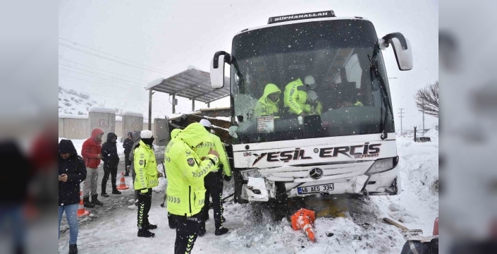 SERHED HABER- Diyarbakır’dan Bitlis istikametine gelen C.D. yönetimindeki Yeşil Erciş firmasına ait 46 AEG 334 plakalı yolcu otobüsü, Arıcılık mevkiinde kar yağışı nedeniyle kayarak sürücünün direksiyon hakimiyetini kaybetmesi sonucu kontrol noktasındaki polis kulübesine çarpmış, kulübedeki 4 polis memuru ise hafif yaralanmıştı.