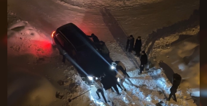Belediye ve karayolları ekiplerinin ulaşımın sürekliliğini sağlamak amacıyla yürüttüğü gece gündüz mesaisi devam ederken, yoğun yağış nedeniyle ara arterlerde araçlar ilerlemekte güçlük çekiyor. İlçenin Esentepe Mahallesi ile Pizok TOKİ konutları 1. etap arasındaki güzergahta seyreden bir araçlar, yoğun kar birikintisi nedeniyle yolda kaldı. Kendi imkanlarıyla araçlarını hareket ettiremeyen sürücülerin yardımına çevredeki vatandaşlar yetişti. Elleriyle ve küreklerle kar kütlelerini temizleyen mahalle sakinleri, saatler süren hummalı bir çalışmanın ardından her iki aracı da saplandıkları yerden çıkardı. Kurtarma operasyonunun ardından yoluna devam eden sürücüler, dondurucu soğuğa rağmen kendilerine destek olan vatandaşlara teşekkür ederek bölgeden ayrıldı.