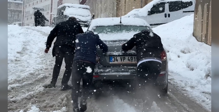 Yolda mahsur kalan sürücülerin imdadına çevredeki vatandaşlar yetişti. Vatandaşların yaklaşık 2 saat süren kar küreme ve itme yardımlarıyla araçlar kurtarılarak yollarına devam etmeleri sağlandı.