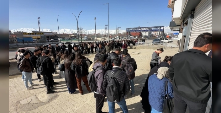 Hakkari’nin Yüksekova ilçesinde öğrenciler deprem riski nedeniyle yıkılıp kiralık bir binada hizmet veren kütüphanenin önünde sabahın ilk ışıklarıyla uzun kuyruklar oluşturdu.
