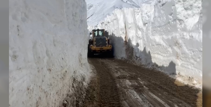 Yüksekova ilçesinde Nisan ayında karla mücadele çalışmaları yoğun şekilde devam ediyor. İl Özel İdaresine bağlı Yüksekova Şantiyesi Şefliği ekipleri, ilçe merkezinde bulunan Doski Vadisi’ndeki Bostancık köyü yolunda çalışmalarını aralıksız sürdürüyor. Kardan oluşan tüneller ve 6 metreyi bulan kar kalınlığına karşı zaman zaman zor anlar yaşayan ekiplerin kepçe ile açamadıkları yolda ekskavatör devreye giriyor. Kepçenin boyunu aşan karda ilerlemekte güçlük çeken ekipler, çığ tehlikesine rağmen çalışmalarına gece gündüz devam ediyor. Özellikle yüksek kesimlerde yaşayan vatandaşların mağdur olmaması için yoğun bir çalışma yürüten ekiplerin açtığı yollar ise tünelleri andırıyor. Karla mücadele ekipleri günlerdir süren çalışmanın devam edeceğini ifade ederken, tünelleri andıran yollarda vatandaşlar hatıra fotoğrafı çektiriyor.