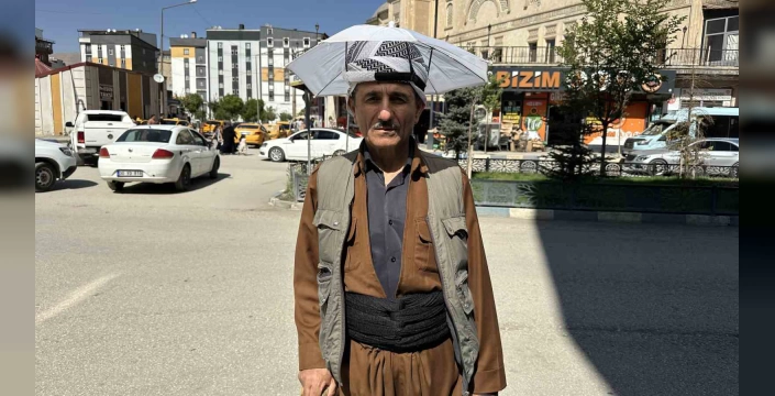 SERHED HABER- Hakkari'nin Yüksekova ilçesinde yaşayan 60 yaşındaki Hasan Siri, yörenin bunaltıcı sıcağıyla kendine özgü bir yöntemle başa çıkıyor. Doktor tavsiyesi üzerine güneşten korunmak için İrandan getirdiği kafa şemsiyesiyle dolaşan Siri, yıllardır hem sağlığını koruyor hem de ilgi odağı oluyor.