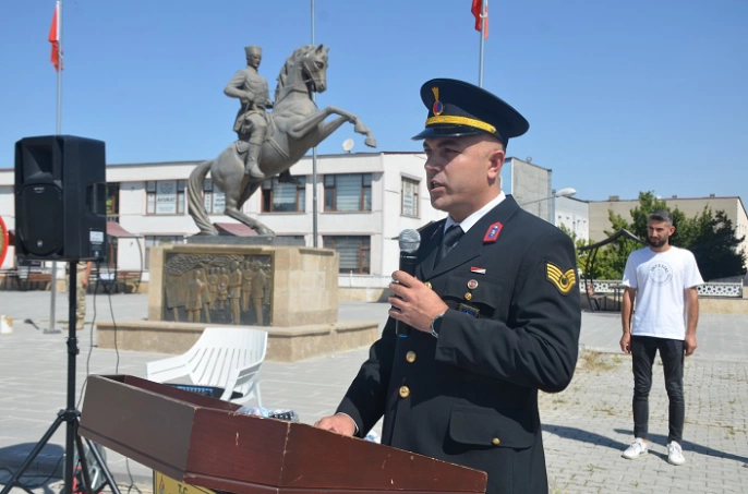 Günün anlam ve önemine dair konuşmayı Jandarma Personeli Astsubay Üçvş. Hakan Doğan yaptı. Doğan konuşmasında şunları söyledi: “Ulu Önder Mustafa Kemal Atatürk, yok denecek kadar az imkânla, milletimizin inancı, kahramanlığı ve vatan sevgisiyle bu büyük zaferi kazanmıştır. 103 yıl önceki o inanılmaz zaferin gururunu bugün de damarlarımızda taşıdığımız asil kanın verdiği güçle yaşıyoruz.