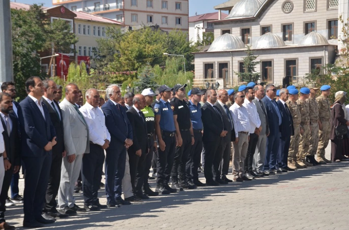 SERHED HABER- Tören, Bulanık Kaymakamı Ömer Övünç Koşansu’nun Atatürk Anıtı’na çelenk sunmasıyla başladı. Ardından saygı duruşunda bulunuldu ve hep bir ağızdan İstiklal Marşı okundu.