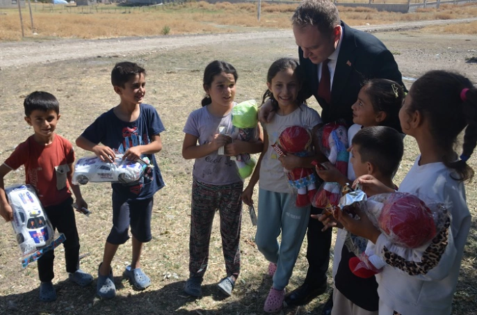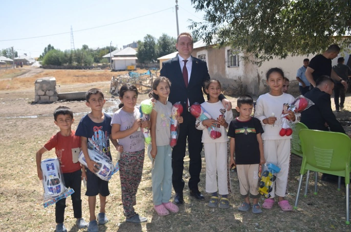 Kaymakam Koşansu, ziyarette çocuklara da büyük ilgi gösterdi. Yanında getirdiği oyuncak ve çikolataları çocuklara hediye eden Koşansu, çocuklarla hatıra fotoğrafı çektirdi.