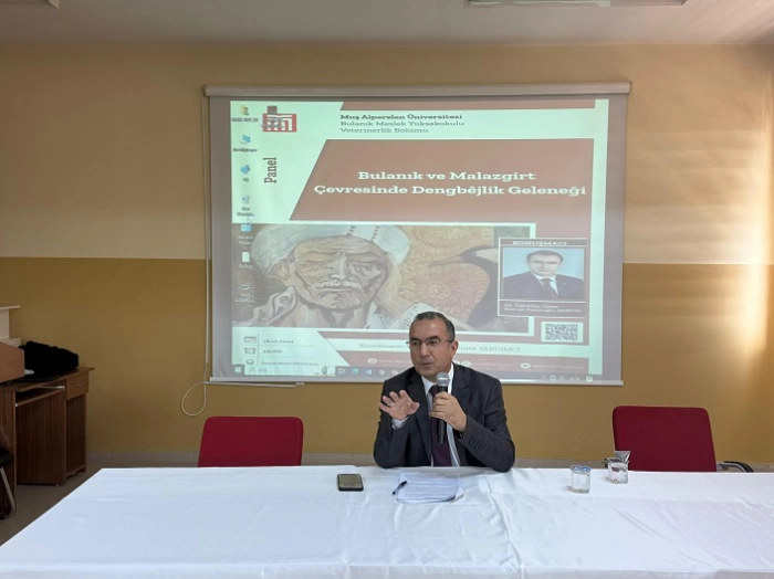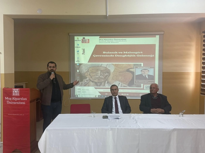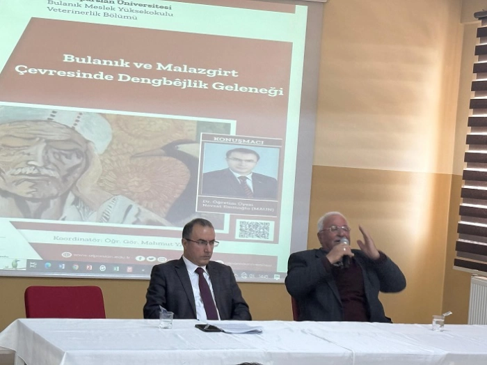 SERHED HABER - Bulanık MYO’da Muş Alparslan Üniversitesi Fen Edebiyat Fakültesi Kürt Dili ve Edebiyatı Bölümü Dr. Öğr. Üyesi Nevzat EMİNOĞLU'nun "Bulanık ve Malazgirt'te Dengbêjlik Kültürü" konulu sunumla panelisti olduğu ve Bulanıklı Dengbêj Hasanê Lîzê'nin dengbêjlik kılamları (eserleri) icra ettiği keyifli bir panel gerçekleşti.