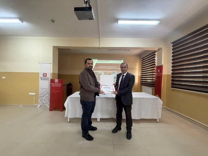 Panel sonunda Bulanık Meslek Yüksekokulu Müdürü Prof. Dr. İrşad Sami Yuca Panelist Dr. Öğr. Üyesi Nevzat Eminoğlu ve Dengbêj Hesenê Lîzî'ye Katılım ve Teşekkür Belgesi sundu ve katılımcılara teşekkür etti.
